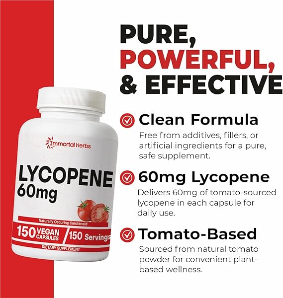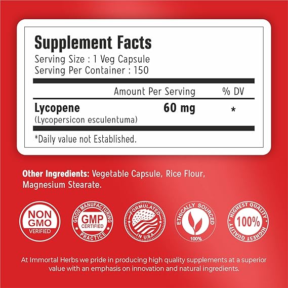 • πŸ… Inspired by Nature, Backed by Science: At Immortal Herbs, we blend ancient herbal traditions with modern scientific practices. By incorporating this lycopene supplement into a balanced lifestyle, you can support your journey toward improved vitality and overall wellness. Discover the benefits of nature’s finest ingredients with a supplement designed for resilience and strength.