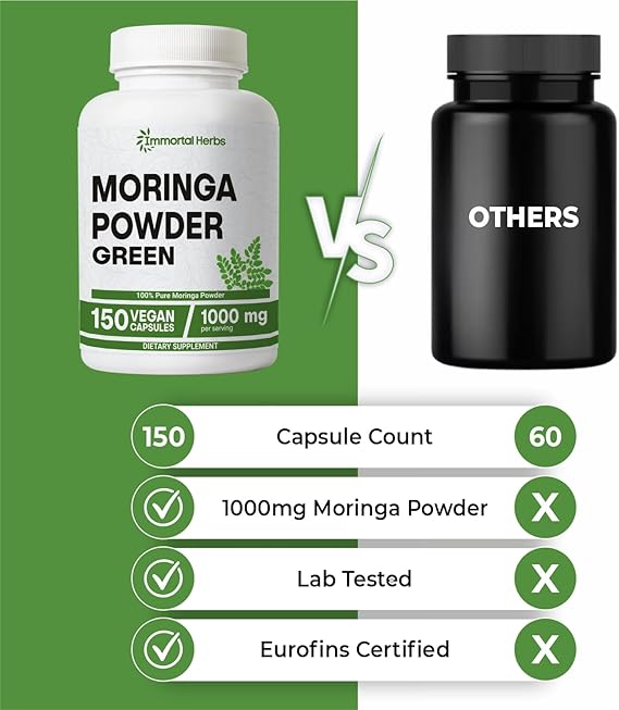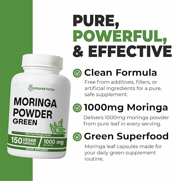 • 🌿 Inspired by Nature, Backed by Science: At Immortal Herbs, we blend ancient herbal traditions with modern scientific practices. By incorporating these moringa capsules into a balanced lifestyle, you can support your journey toward improved vitality and overall wellness. Discover the benefits of nature’s finest ingredients with a supplement designed for resilience and strength.