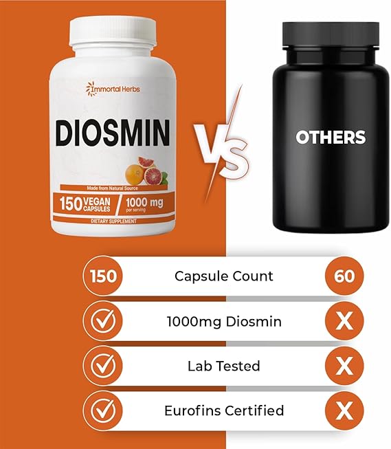 - 🌿 Inspired by Nature, Backed by Science: At Immortal Herbs, we blend ancient herbal traditions with modern scientific practices. By incorporating these diosmin 1000mg capsules into your balanced lifestyle, you can take proactive steps toward overall wellness. Discover the benefits of nature’s finest ingredients with a supplement designed for vitality, resilience, and strength. Start your journey toward enhanced vitality today with our premium diosmin supplement.